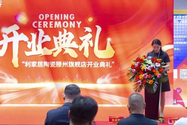 滕州利家居陶瓷營銷中心總經理李蕾致辭,她表示:今天是利家居瓷磚在滕州邁出的第一步,今天的順利開業,只是我們面對市場迎接挑戰的開始,是滕州利家居旗艦店萬里征程的第一步。未來,我們將帶著總部領導寄予的厚望,新老顧客對我們的期望,將利家居人品質發揚光大,秉承“一次選擇 一生信賴”的理念,提升利家居品牌服務形象!期待在接下來的日子里,我們與在座的各位繼續共創美好未來,讓我們一同揭開滕州瓷磚行業的新篇章!