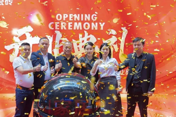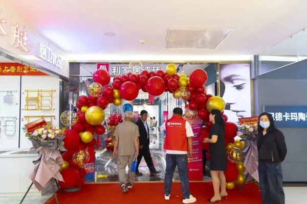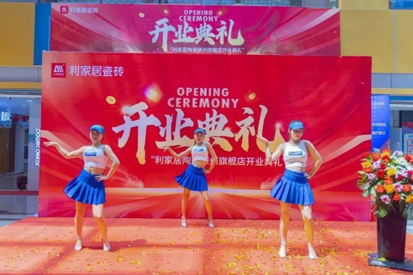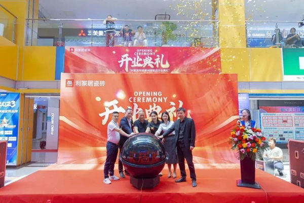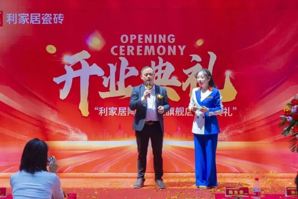 利家居瓷磚營銷總經理陳東榮、東城集團怡家國際建材城運營總監杜波、滕州利家居陶瓷營銷中心總經理李蕾共同為滕州利家居瓷磚旗艦店開業盛典進行啟動,禮花飛天,象征著飛黃騰達,利家居瓷磚在滕州開啟新征程。