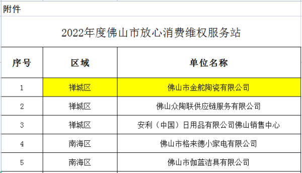 入選2022年度佛山市放心消費單位(點)