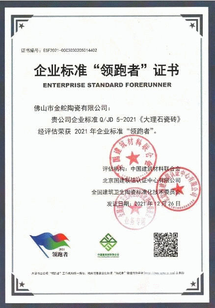 近日,金舵瓷磚榮獲了三項團體標準參編單位證書,分別是《建筑衛生陶瓷行業雙承諾服務規范》、《建筑衛生陶瓷行業和諧勞動關系規范》和《建筑衛生陶瓷行業商業秘密保護規范》。