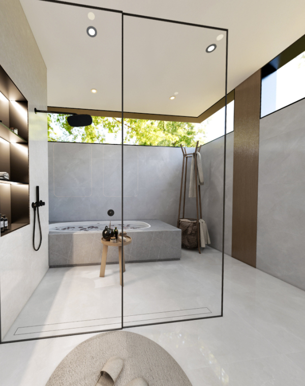 卡士灰,色調(diào)柔和,搭配白色紋理細(xì)膩而不規(guī)則。溫潤(rùn)的質(zhì)感、柔和的色彩,使其成為優(yōu)雅衛(wèi)浴間的絕佳搭配。半開(kāi)放式結(jié)構(gòu)設(shè)計(jì)給予衛(wèi)生間更加寬敞明亮的室內(nèi)環(huán)境。