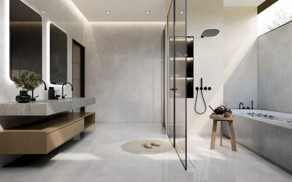 而在選磚方面,相較于穩(wěn)妥而傳統(tǒng)的400×800mm、450×900mm瓷磚,越來(lái)越多消費(fèi)者更鐘情于600×1200mm,無(wú)論上墻下地還是廚房、浴室等多場(chǎng)景,均可完美契合裝飾需求實(shí)為跨界應(yīng)用首選。