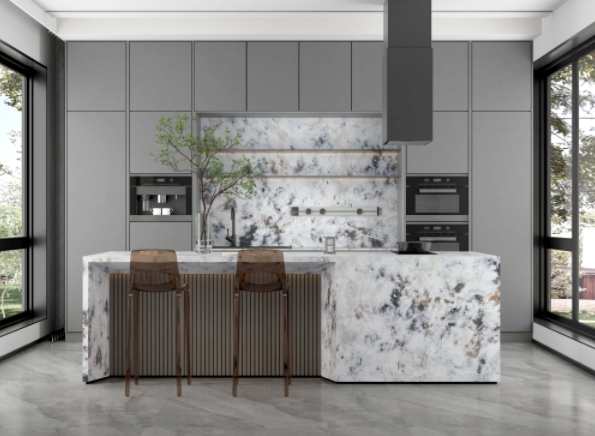 空間是生活方式的表現(xiàn),更是享受生活本質(zhì)的態(tài)度,除了居住功能,人們更關(guān)注生活空間的健康屬性與個(gè)性化審美需求。具體到廚房的臺(tái)面趨勢(shì),廚房的功能性及設(shè)計(jì)變得更為創(chuàng)新性,石英石是常用的廚房臺(tái)面材質(zhì),法薩石憑借其大氣精致的外觀,獨(dú)特的紋理,以及容易清潔且耐用的屬性,深受人們的喜愛。