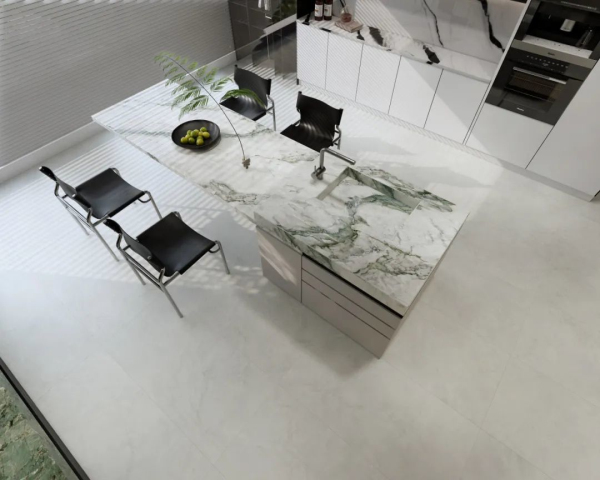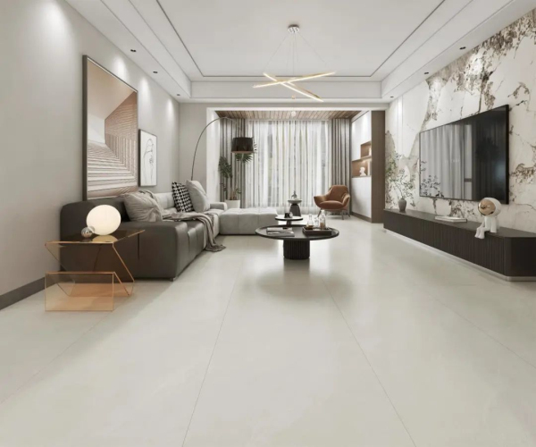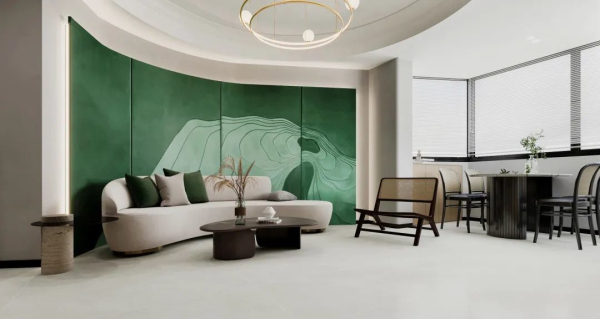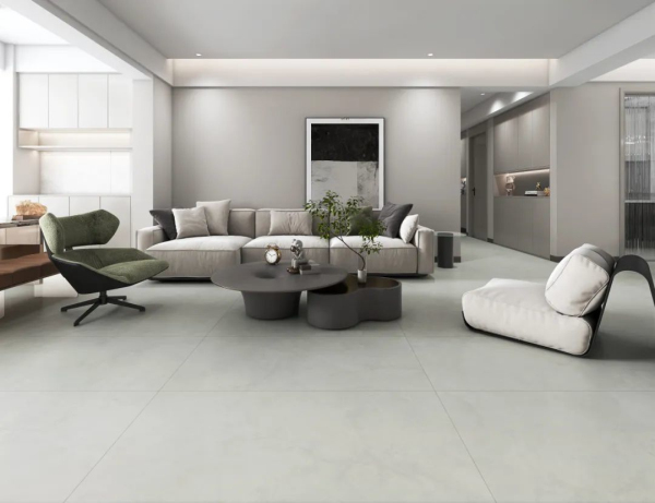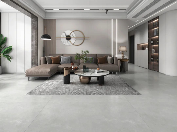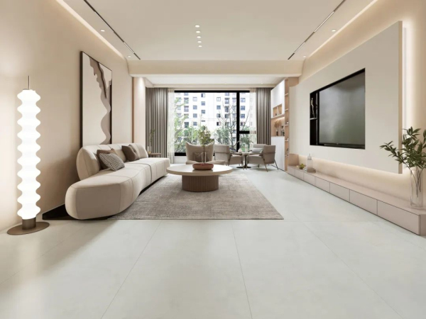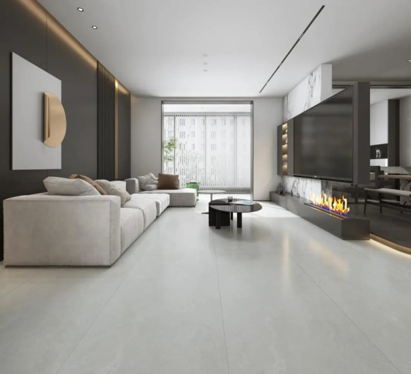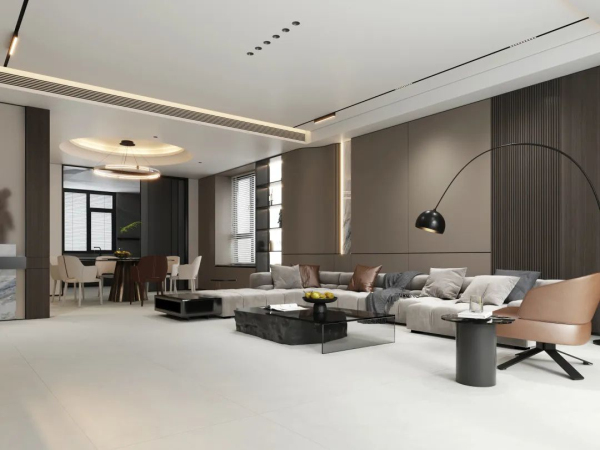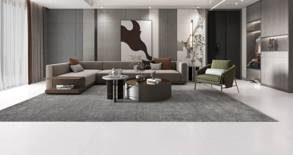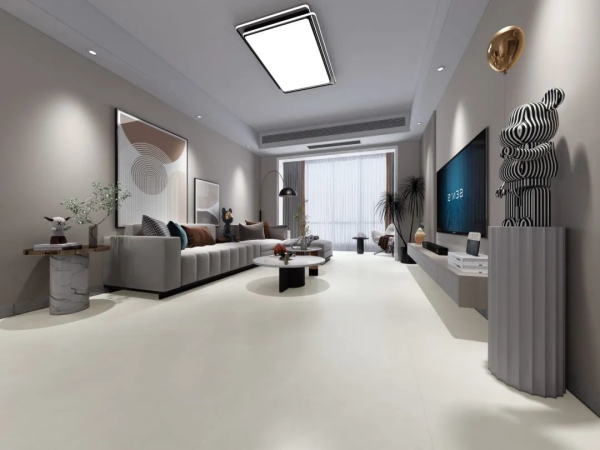 天山系列產品,淺灰色為基調,大面積鋪貼效果美觀又簡潔。空間設計以簡單、純粹為追求,在感官上透出源源不斷的藝術氣息。