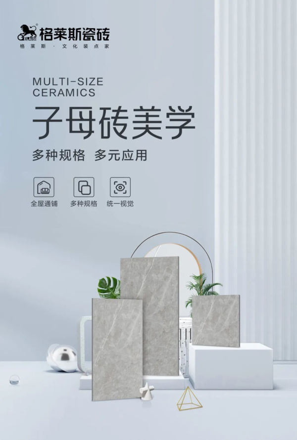 隨著市場的轉變,消費者在家裝風格上更多追求質樸、干凈的整體調性,以便空間留有更多可承載個人風格喜好變化的可能。格萊斯子母磚美學,以同花色、同質感的多規(guī)格產品助力消費者打造原生而舒適的家,在“簡法生活”中感受簡單的美好。