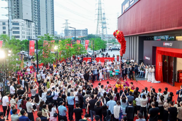 鑼鼓喧天吉祥到,瑞獅起舞好運(yùn)至!伴隨著極具嶺南傳統(tǒng)文化韻味的舞獅表演,鷹牌集團(tuán)總裁陳賢偉、鷹牌實(shí)業(yè)董事/天安新材董事長(zhǎng)助理徐芳、鷹牌集團(tuán)常務(wù)副總裁白秀芬、鷹牌集團(tuán)副總裁陳方根、鷹牌營(yíng)銷中心副總經(jīng)理翁凌風(fēng)、鷹牌營(yíng)銷中心副總經(jīng)理謝偉共同為鷹牌新總部展廳開業(yè)剪彩,隨著電動(dòng)幕布的緩緩打開,鷹牌陶瓷新總部展廳正式揭幕!