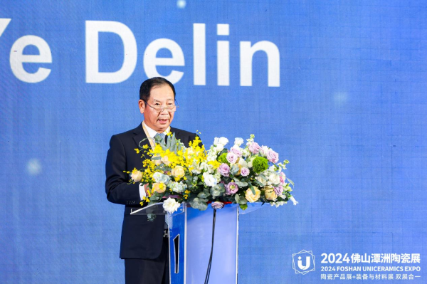 在開幕儀式上,廣東建材行業協會會長、新明珠陶瓷集團董事長葉德林代表主辦方發表致辭,他指出,佛山潭洲陶瓷展的生意圈、朋友圈進一步擴大,參展商從佛山擴展到全國各大主流產區,再擴展到意大利、西班牙、德國、日本、馬來西亞、印度、瑞士、挪威、希臘等十多國家和地區,進口品牌、進口產品的比例進一步擴大,佛山潭洲陶瓷展的專業買家和觀眾從最早的比較臨近的東南亞鄰國擴大到土耳其、沙特、阿聯酋、阿爾及尼亞、俄羅斯、巴西、肯尼亞等全國各大洲的60多個國家和地區。“展示產品品類越來越豐富,原創設計比例越來越高。”