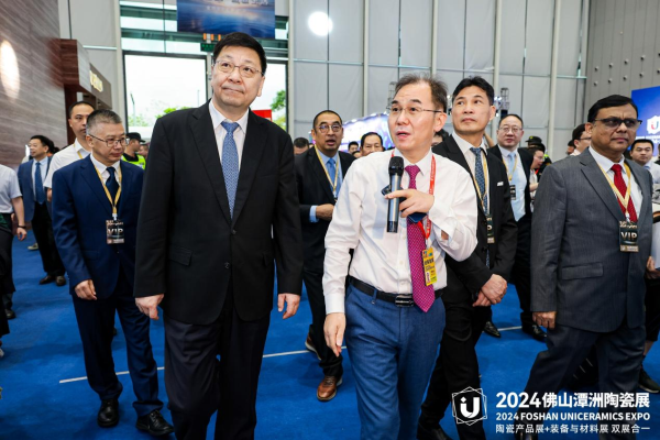 隨后,佛山市人民政府市長白濤先生和多位嘉賓一起巡館,先后參觀了各大企業展館和展示的亮點產品,對佛山潭洲陶瓷展的辦展水平和參展商風貌給予了肯定。