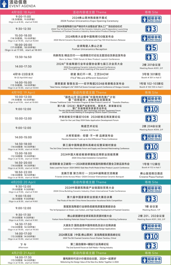 除了帶來一場視覺盛宴,佛山潭洲陶瓷展還同步舉辦全球陶瓷人佛山之夜、2024陶商大會暨中國陶商100強發布會、中國陶瓷原料高峰論壇暨采銷對接會、中國建筑陶瓷產業鏈國際貿易大會、首屆發泡陶瓷行業綠色低碳高質量發展座談會、佛山家居建材全球采購暨資源對接大會等30場活動,幫助陶瓷企業和經銷商尋找更多“不一樣”的商機。