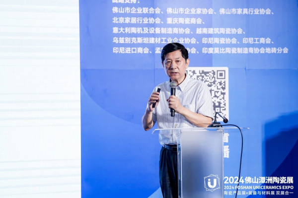 廣東陶瓷協會會長陳環首先致辭,在對來賓的到來表示歡迎和感謝后,陳環會長表示,創新是一個永恒的主題,歷史悠久的陶瓷產業,它的歷久不衰既有產品的創新、科學技術的創新,裝備材料的創新,也包括經營、產業發展的創新,他倡導,未來我們要用新銳技術改造提升傳統產業走向現代化,以科技創新,解碼新質生產力,提升陶瓷行業高質量發展。