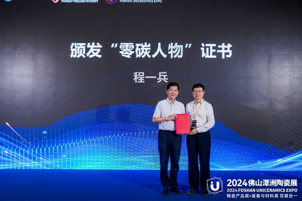 廣東陶瓷協會陳環會長為程一兵院士頒發 “零碳人物”證書