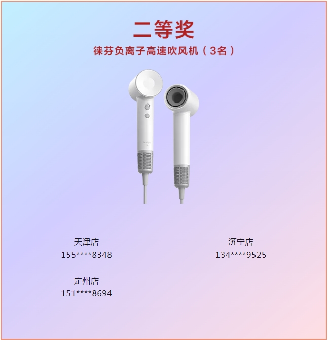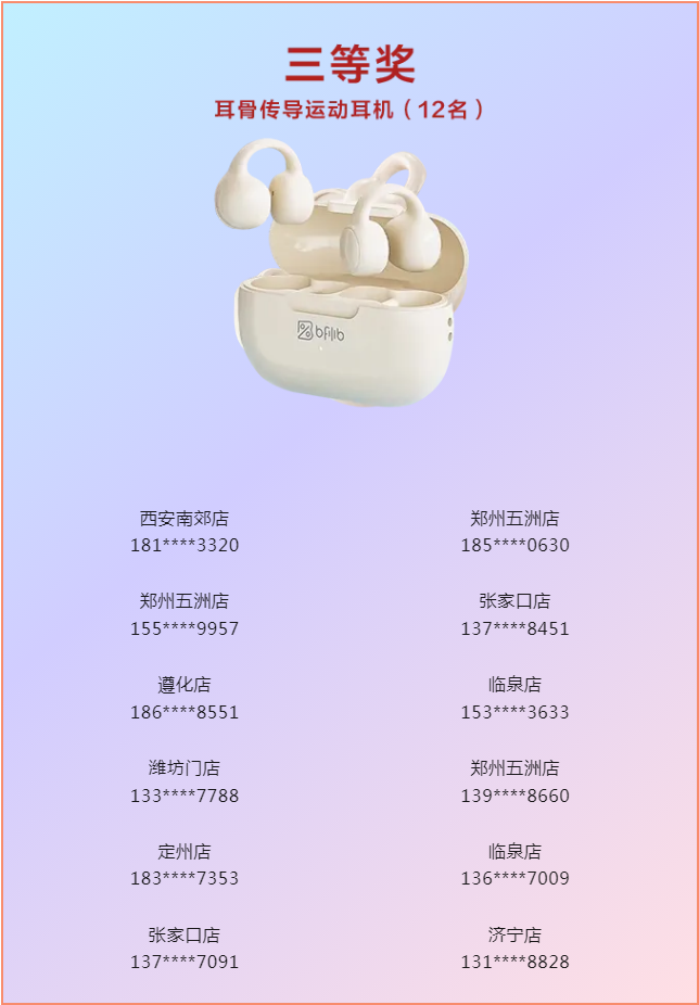 恭喜以上中獎的朋友們!后續由門店專員聯系大家,信息核實后會將獎品寄出!請大家耐心等待。