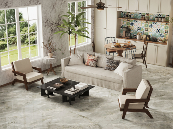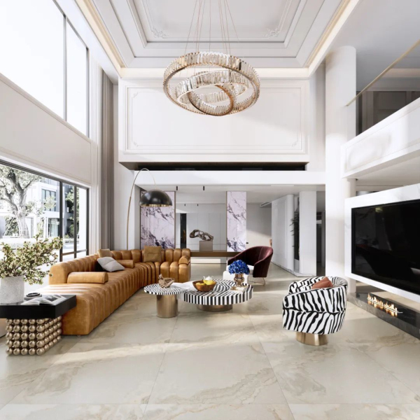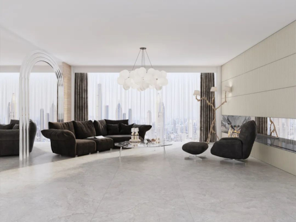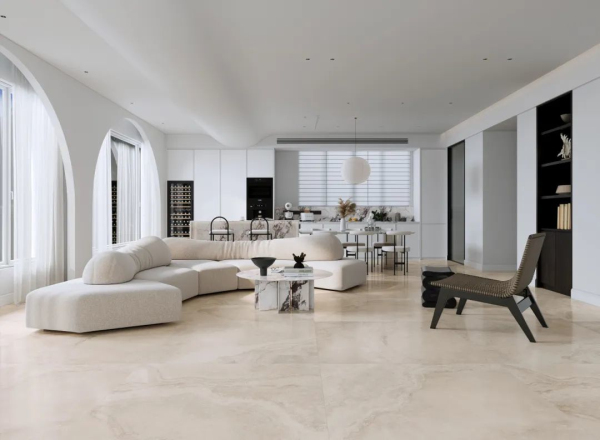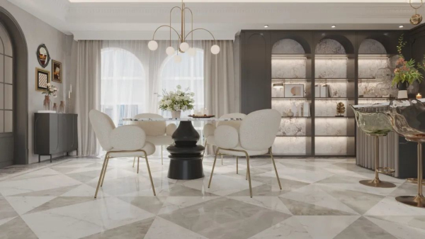 值得一提的是,為進一步塑造產品質、形、色、紋理的豐富層次感,邸韻系列從“方形至上”的美學思想出發,將家的概念巧妙地融入到了瓷磚的設計之中。全系采用1200x1200mm的規格,每一片瓷磚都承載著方形的精華及家的美好寓意。