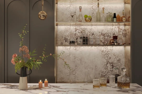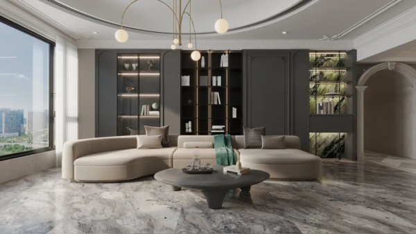 邸韻系列大體可以分為立體雕刻肌理、柔光面、亮光面三大類,全系更注重細節化紋理色彩的呈現,以及線條藝術及光影效果的運用,打造出極具藝術審美的視覺效果和天然石材般的柔滑觸感。無論從工藝品質還是視覺觸感,都能輕松彰顯大宅和奢宅之家的良好品味。