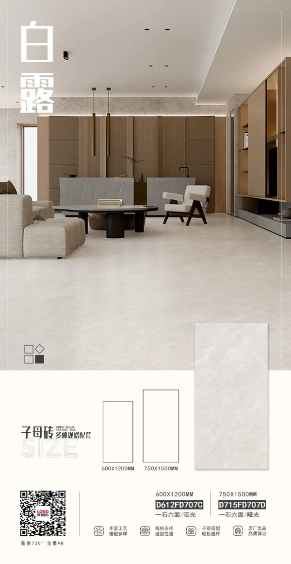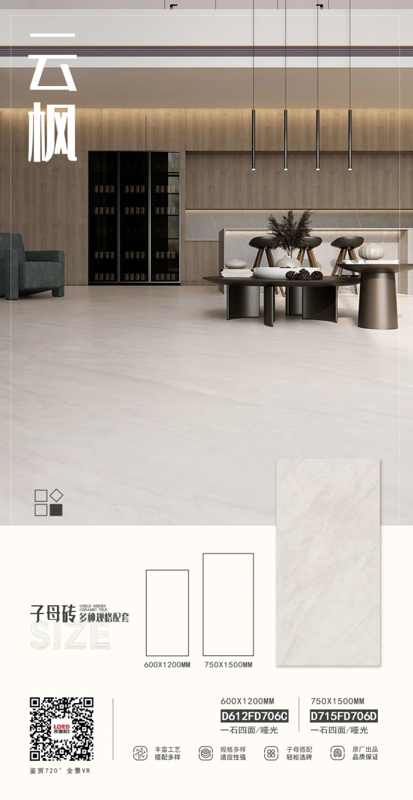 將精湛的「復(fù)刻釉」工藝融入功能之美,演繹出更符合高端空間需求的表面肌理、光感、觸感。在尺寸上,推出750x1500規(guī)格搭配600x1200規(guī)格的子母配套,讓質(zhì)感可以存在于家的每一個(gè)大大小小的空間里。