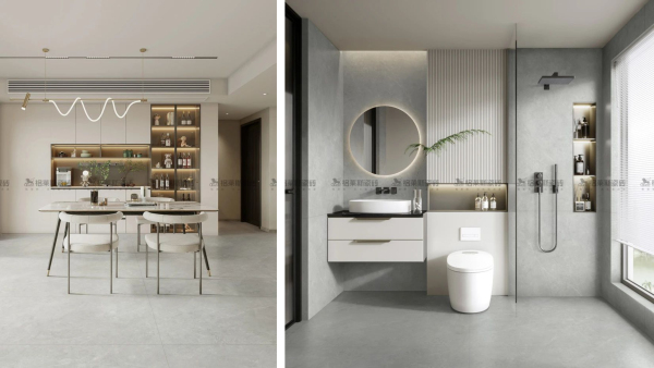 600x1200mm規(guī)格冰花白以絕美質(zhì)感營造奶油系浪漫,通鋪客餐廳、廚房衛(wèi)浴各個空間,舒適美學(xué)輕松打造。