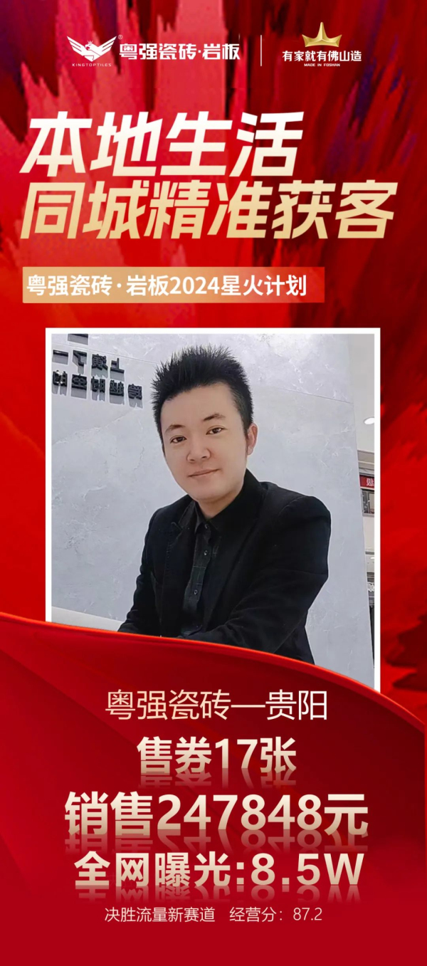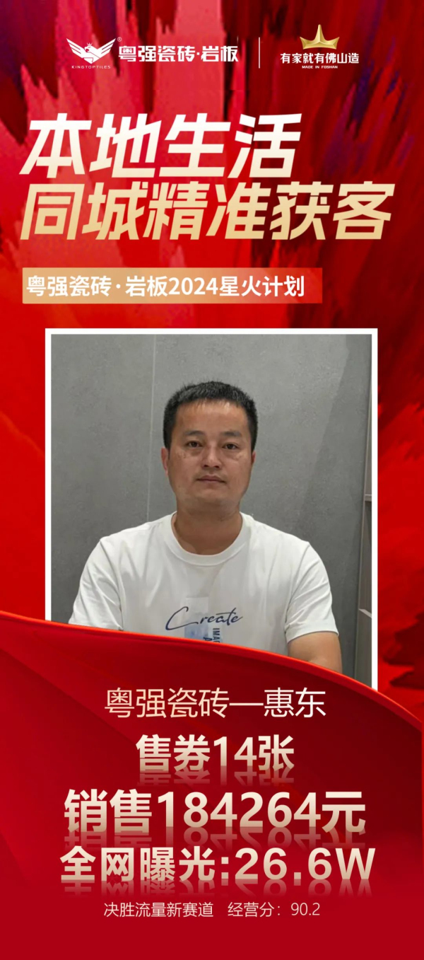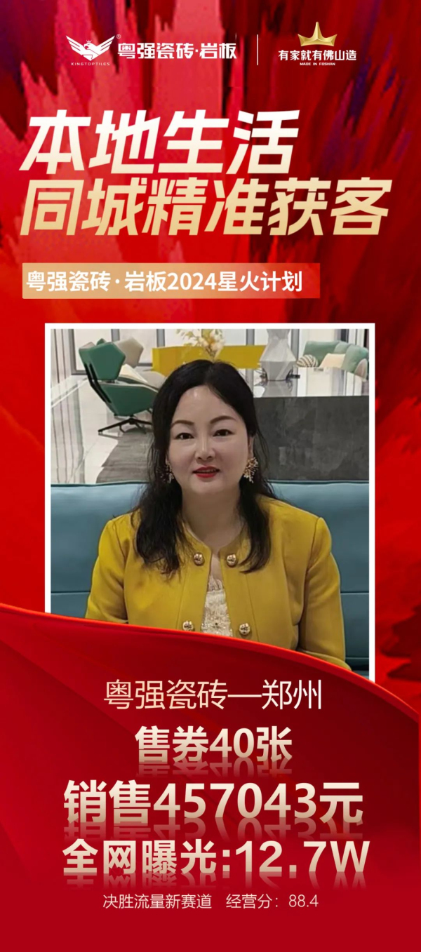 其中,鄭州、貴陽、惠東等地的粵強瓷磚門店在此次特訓營中脫穎而出,銷售業績與全網曝光量均實現了爆發式增長。