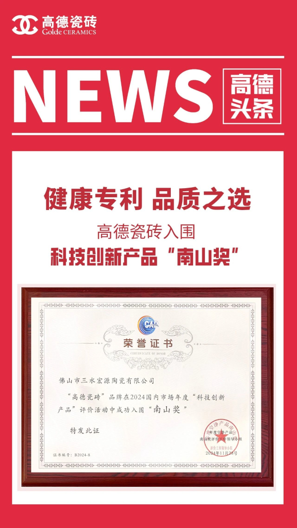 “能量瓷磚發明者”高德瓷磚,憑借其匠心獨運、創新研發的“能量磚”產品,在競爭激烈的2024國內市場年度“科技創新產品”評價活動中脫穎而出,成功入圍備受矚目的“南山獎”。這一殊榮不僅彰顯了高德瓷磚在健康家居領域的深厚積淀與卓越成就,更是對其持續推動行業進步、引領健康生活方式深刻變革的高度認可。