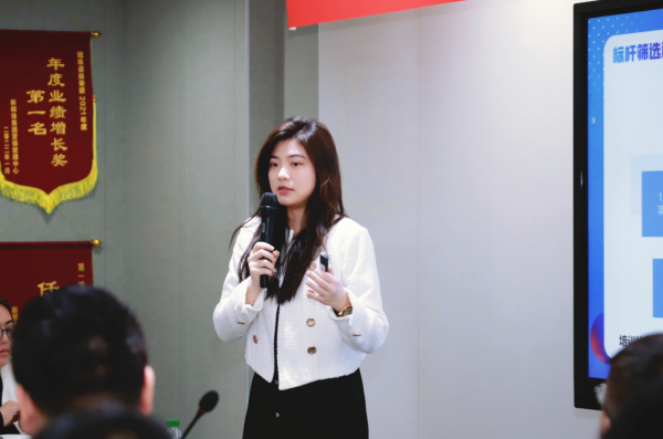 ▲啟動會現場,廣東欣動策劃有限公司運營總監鄧嘉欣對抖音本地化團購項目做深入解讀。