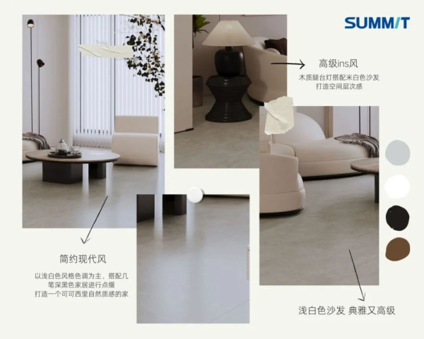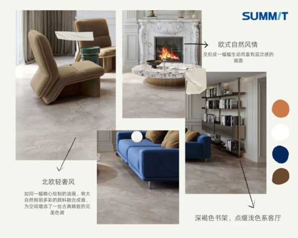 在色彩搭配上,薩米特可可西里系列選擇了淺色調作為主旋律,這與瓷磚上的自然元素相得益彰,營造出一種柔和而溫馨的氛圍。不僅讓空間充滿了層次感和深度,更賦予了家一種超脫世俗的寧靜與和諧。