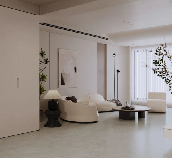 淺色的墻面與地面,宛如可可西里草原凈土,為家居空間奠定了寧靜的基礎。而黑色茶幾的巧妙點綴,則在視覺上形成鮮明對比,既增添了空間的現(xiàn)代感,又不失為一種穩(wěn)重的藝術表達。