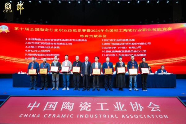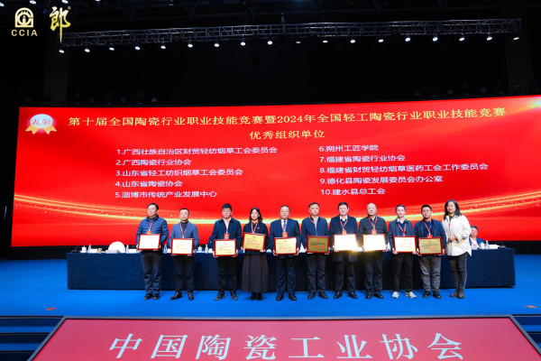 會上,中陶協為在競賽活動中積極組織開展預賽和決賽工作及特殊貢獻的各地方陶瓷協會、產業工會、企業及院校給予表彰,福建省陶瓷行業協會、福建省財貿輕紡煙草醫藥工會工作委員會、德化縣陶瓷發展委員會辦公室被授予第十屆全國陶瓷行業職業技能競賽暨2024年全國輕工陶瓷行業職業技能競賽“優秀組織單位”稱號。德化縣陶瓷發展委員會辦公室被授予第十屆全國陶瓷行業職業技能競賽暨2024年全國輕工陶瓷行業職業技能競賽“特殊貢獻單位”稱號。