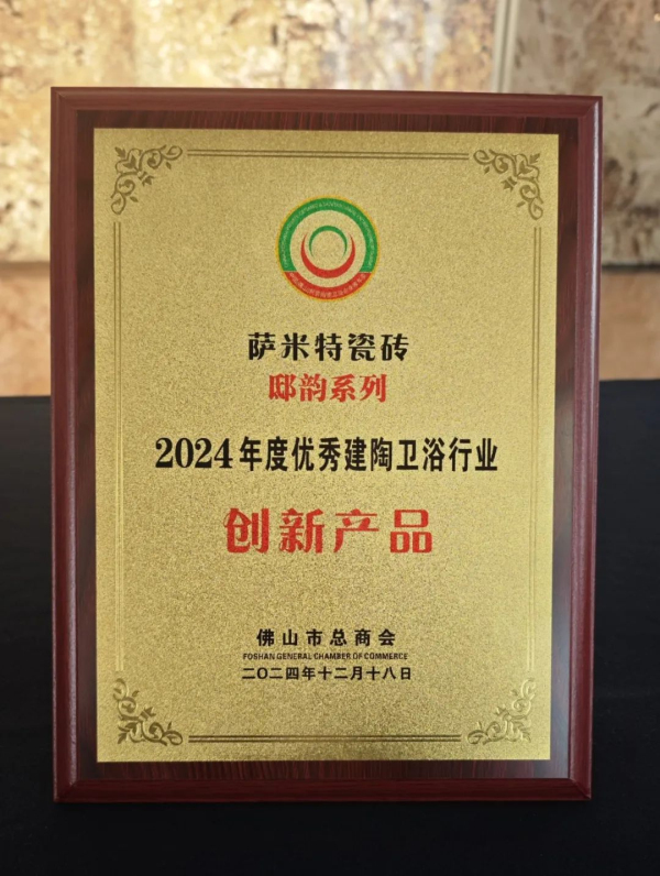 薩米特瓷磚邸韻系列產(chǎn)品以其獨(dú)特的設(shè)計(jì)理念和卓越的產(chǎn)品品質(zhì),榮獲了2024年度優(yōu)秀建陶衛(wèi)浴行業(yè)創(chuàng)新產(chǎn)品獎(jiǎng)項(xiàng)。