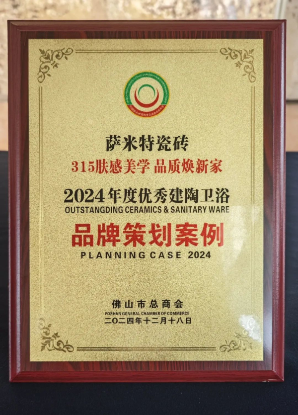 與此同時(shí),薩米特瓷磚的315膚感美學(xué)品牌策劃案例也榮獲了2024年度優(yōu)秀建陶衛(wèi)浴品牌策劃案例獎(jiǎng)項(xiàng)。