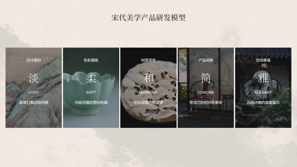 宋境系列從宋代十二美學(xué)中汲取靈感,提煉出淡、柔、和、簡、雅五大審美特色,以“少即是多”的留白意境指導(dǎo)產(chǎn)品研發(fā),觀宋跡、悟宋韻、知宋意、品宋境,形成全新一代以“宋代美學(xué)”為核心概念的超級新品。