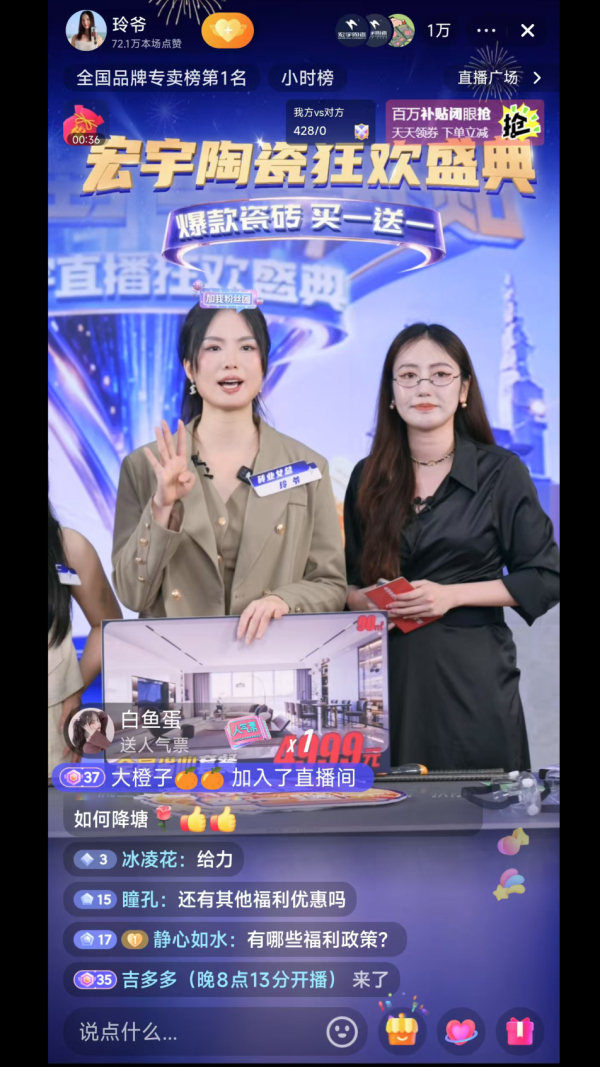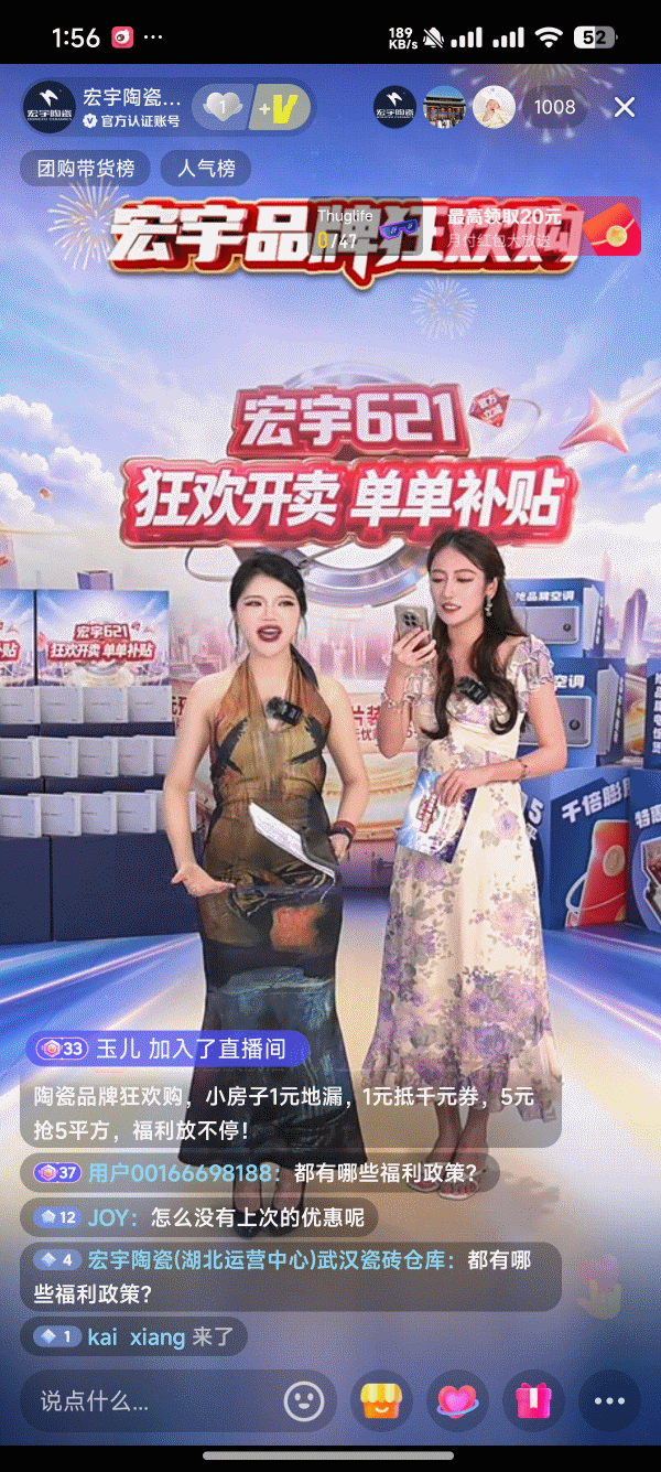 宏宇品牌深度整合“星推搜直”營銷鏈路,開創“生服IP+短劇+團購大場”三維攻勢。在4月潭州陶瓷展期間,聯動千萬粉絲達人@玲爺打造《磚業女總》創意短劇,通過本地團購直播盛典實現單日GMV破千萬。2025年新年后第一個營銷節點,更以抖音平臺為核心,通過預售引流、直播轉化與線下核銷形成閉環,斬獲超10000單的行業標桿戰績。這種“內容種草+精準觸達+場景轉化”的全域運營體系,成功打破傳統建材行業營銷壁壘。