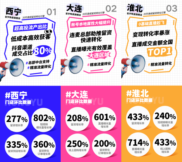 與抖音官方達成的深度戰略合作,使宏宇陶瓷率先跑通家居新零售模型。通過巨量引擎本地推產品實現200+核心城市精準覆蓋,結合“達人打卡+品牌自播矩陣+精準流量自轉化”的三重加持,據說各地門店單月大盤直播留資轉化率均有大幅提升,大連環比增長200%、西寧環比增長360%、淮北環比增長433%等。這種“平臺資源+品牌勢能”的共振效應,不僅為行業樹立數字化營銷標桿,更驗證了建材品牌在興趣電商領域的無限可能。