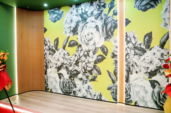 楊總:去年到廣州,一個偶然的機會接觸了綠材。我當時比較震撼,現在居然還有這么好的產品!我們的石晶地板、墻板、軟瓷這些產品能解決不同的空間需求,可以折彎,可以做弧度造型。我當時就想,這些產品太牛了,我一定要把它帶回成都!當天晚上接觸,第二天就定了,因為好的產品不等人。
