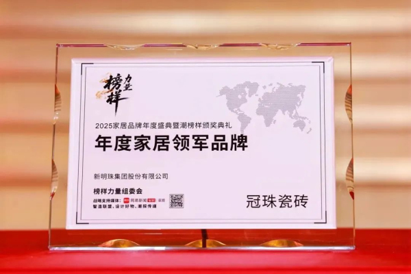 2025年冠珠瓷磚持續突破,打造系列大美新品、筑家美學示范,成就“讓中國美成為世界美”征程上一個又一個的里程碑,引領行業,成就榜樣!這一次獲獎,是對品牌實力與產品美學價值的認可,更是冠珠瓷磚載譽前行的動力。