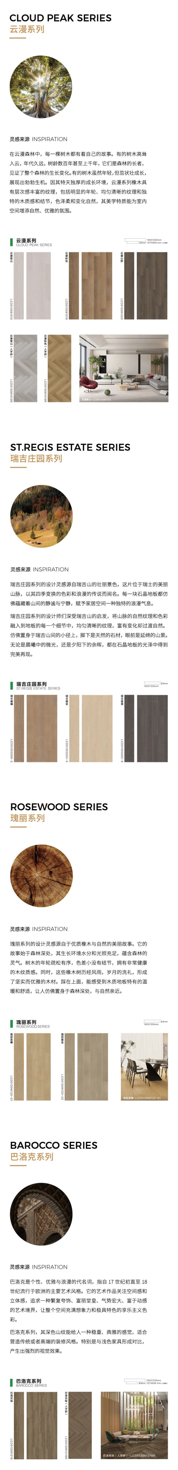 石晶地面系統涵蓋“云漫系列、瑞吉莊園系列、瑰麗系列、巴洛克系列”4大系列,產品表面設計豐富,具有天然的質感和美觀性,滿足不同設計風格的需求。