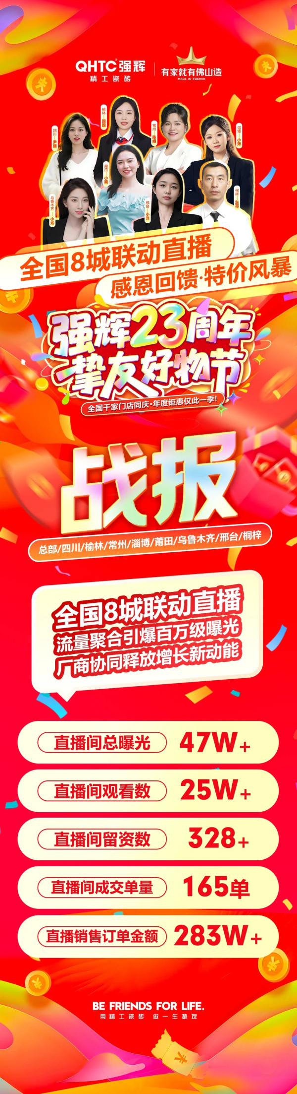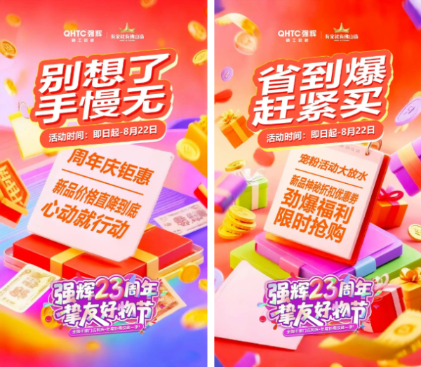 精工筑家,美好生活。為感謝全國消費者長期以來的支持與厚愛,強輝精工瓷磚特別策劃“強輝23周年 摯友好物節”系列活動,多重盛惠好禮,限時神秘折扣、千萬補貼、新品超低價等重磅福利,為消費者帶來一場八月的狂歡盛宴!