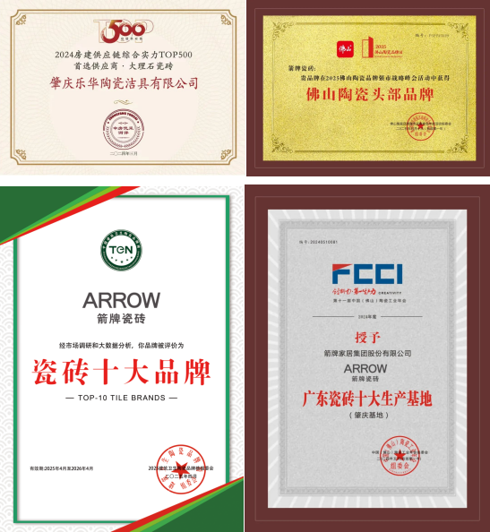 箭牌瓷磚深耕行業(yè)18年 , 憑借品牌硬實(shí)力,獲行業(yè)與消費(fèi)者的一致肯定。箭牌瓷磚連續(xù)5年榮獲“瓷磚十大品牌”大獎(jiǎng)、連續(xù)4年獲“中國(guó)房地產(chǎn)品牌500強(qiáng)首選供應(yīng)商”、連續(xù)4年榮獲“領(lǐng)軍品牌“大獎(jiǎng),2025年榮獲佛山陶瓷頭部品牌大獎(jiǎng)等重磅獎(jiǎng)項(xiàng)。