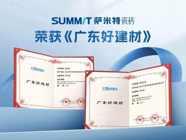 8月,由廣東省建筑材料行業協會主辦的“第二屆廣東建材科技與產業發展大會暨廣東省建筑材料行業協會五屆三次會員代表大會”在廣州空港博覽中心隆重舉行。其中,薩米特瓷磚獲得“廣東好建材”榮譽;