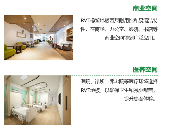 產品具備耐磨耐刮、柔韌性強、隔音降噪、防水防潮、防火阻燃等優異性能。表面經特殊處理,具有防腐防霉、防滑減震、抗污易清潔等功能,廣泛適用于教育、商業、公共空間以及醫院、養老院等多種空間場景。