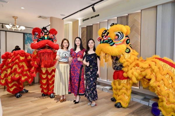 在熱烈的掌聲中,領導嘉賓為瑞獅點睛。朱砂落筆,點睛納吉,雄獅瞬間煥發神采,騰躍起舞,寓意新明珠綠材佛山格萊美專賣店財源廣進、吉祥興旺,現場洋溢著吉祥歡騰的熱烈氣氛。