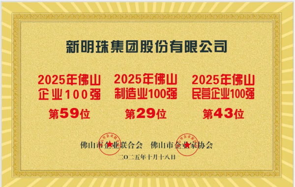 此前,在由佛山市委、市政府召開的“2025年佛山企業家大會暨人才發展大會”上,新明珠集團蟬聯“2025年佛山企業100強”系列榜單三大“百強”榜單。接連獲得省、市兩級核心認可,是新明珠集團高質量發展成果的有力證明。
