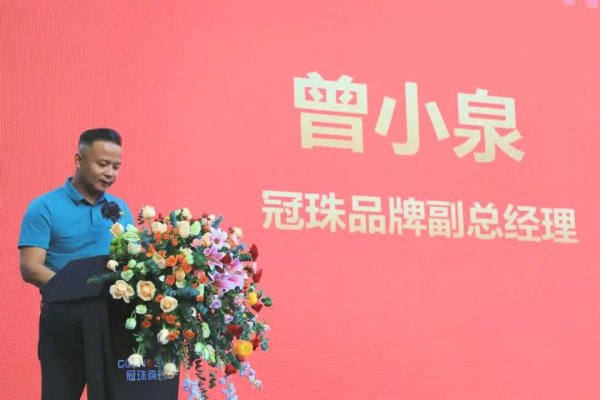 冠珠瓷磚品牌副總經理曾小泉作為品牌總部代表發表致辭。他表示,致力于讓中國人的家更美好,這是冠珠瓷磚的初心。在大美同行的路上,南通冠珠一直是冠珠瓷磚的優秀合作伙伴,不管是品牌形象展示、客戶購物體驗還是創新服務力等方面都非常符合現代消費者的需求,是冠珠瓷磚體系內極具代表性的標桿市場。冠珠瓷磚品牌總部會一如既往地支持南通冠珠的運營與發展,希望在座各界嘉賓及業主朋友們,能夠繼續支持冠珠,推薦冠珠!