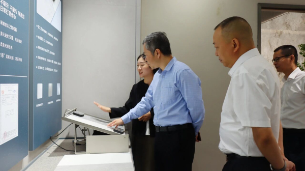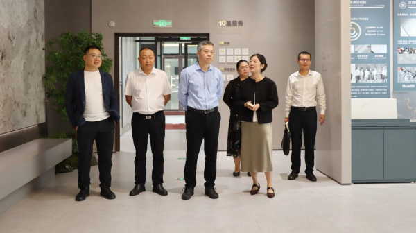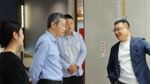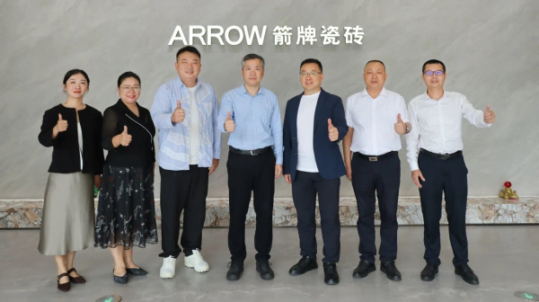 ▲住房和城鄉建設部科技與產業化發展中心處長梁洋、中國建筑材料流通協會執委副會長李作奇一行蒞臨箭牌瓷磚總部大廈參觀交流