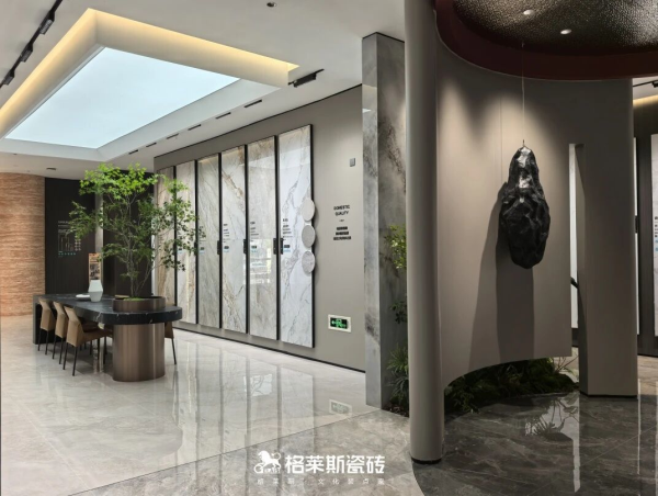 格萊斯瓷磚總部以“傳承經典文化”為內核,通過場景化設計與“五好品牌”的融合展示,將傳統文化的厚重與現代質感的追求無縫銜接,實現美學表達的融會貫通。