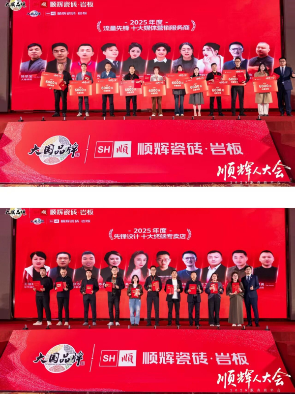 品牌的發(fā)展,離不開每一位順輝家人的辛勤付出。為了表彰年度表現(xiàn)杰出的順輝家人,會(huì)議依次頒發(fā)了“2025年度流量先鋒 十大媒體營銷服務(wù)商”“2025年度先鋒設(shè)計(jì) 十大終端專賣店”以及分級經(jīng)銷商等獎(jiǎng)項(xiàng),并壓軸揭曉年度“十大風(fēng)云人物”。他們以卓越的市場業(yè)績與品牌忠誠,為全體順輝家人樹立了學(xué)習(xí)的標(biāo)桿。這份沉甸甸的榮譽(yù),是對他們奮斗成果的最高致敬。