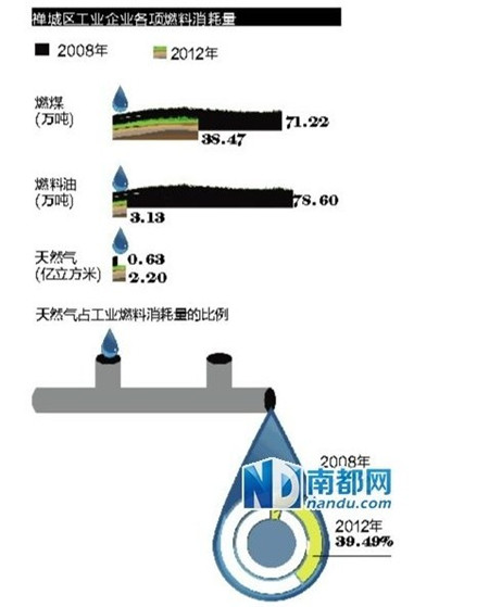 到2012年底,禪城區工業企業燃煤消耗量38.47萬噸,燃料油消耗量3.13萬噸,天然氣消耗量2.20億立方米,其他燃料折算成標準煤消耗量12.89萬噸。按此計算,全區工業企業能源(不包括用電量)折算成標準煤消耗量74.10萬噸,天然氣折算成標準煤消耗量29.26萬噸,占比達到39.49%,位居全市第一,天然氣所占比例是2008年的8倍。(記者童思娜)