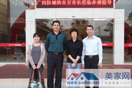 11月23日下午5點,在這個豐收的季節,廣西防城港市副市長萬秋華和廣東省工商聯陳子雄科長及廣西防城港市副市長秘書黃秘書一行來到新明珠集團參觀考察。董事長助理何躍華等領導熱情接待廣西防城港市領導一行,并詳盡講解了公司石材展區、拋瓷展區、仿古磚展區和衛浴展區及各種樣板間空間。