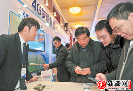 12月10日,在新疆移動4G網絡開通發布會現場,市民現場體驗4G網絡(記者寇凝攝)