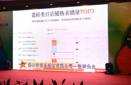 2013年8月12日,瓷磚先生旗艦店進駐天貓商城,34天就實現銷售進入瓷磚類目20名排行。從第一單到日銷售10萬元,瓷磚先生僅僅用了90天。上線第99天,在全網瓷磚類目銷售躍居前5名,創造了互聯網瓷磚行業的一個奇跡。