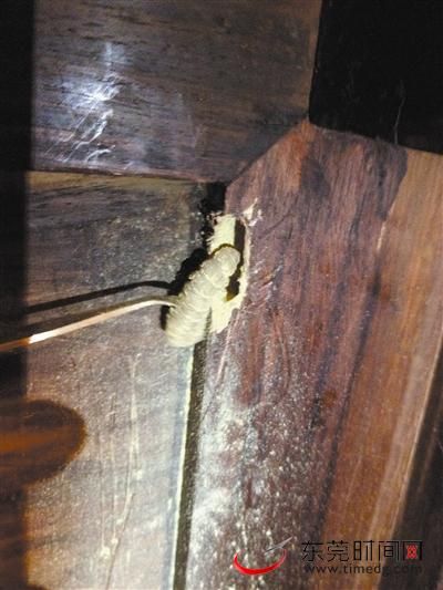 葉先生介紹,今年以來,椅子里偶爾會發出來“嗞嗞”的聲音,他先后用鑷子從兩把椅子發出響聲的位置將蟲夾出來,有兩三厘米長。