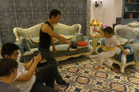 鏡頭一:在藍珀瓷磚“安納西”產品系列與“戛納” 產品系列實景間,功夫媽媽在這里展示他們的功夫家庭:媽媽與兩位女兒在陽臺上舒展妙曼身姿,呵護兩只雛燕精彩亮相,小女兒的一字馬,大女兒的下腰,均顯示出母女仨的不凡功底與實力;而在客廳,5口之家的爸爸與最小的兒子生龍活虎地練習著跆拳道招式,小小年紀卻已身手不凡;
